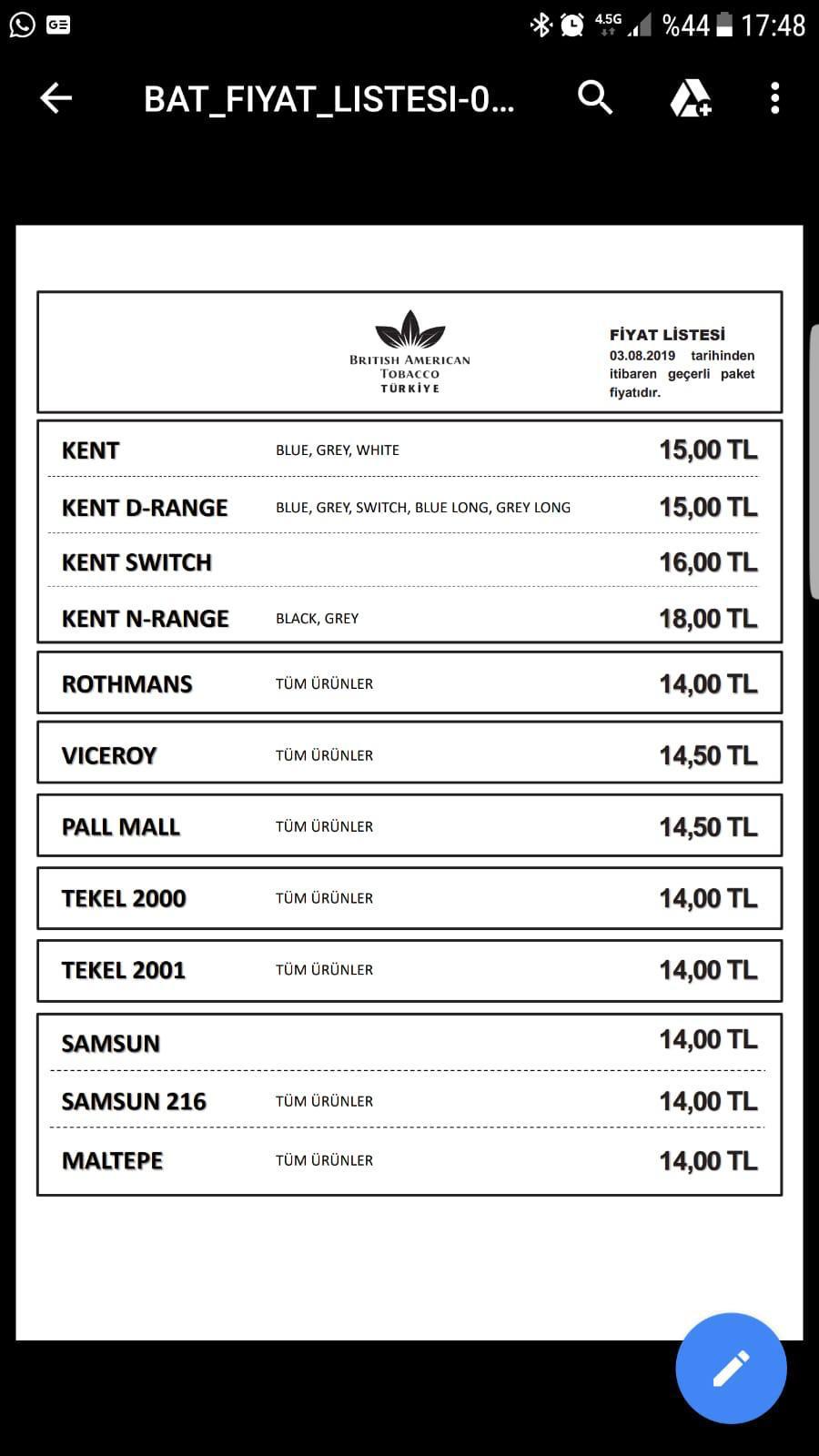 3 ağustos 2019 sigara zammı