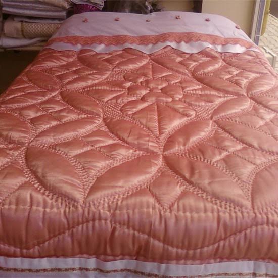 Bol işlemeli, rengarenk ve eşek ölüsü ağırlığındaki yün yorgan.