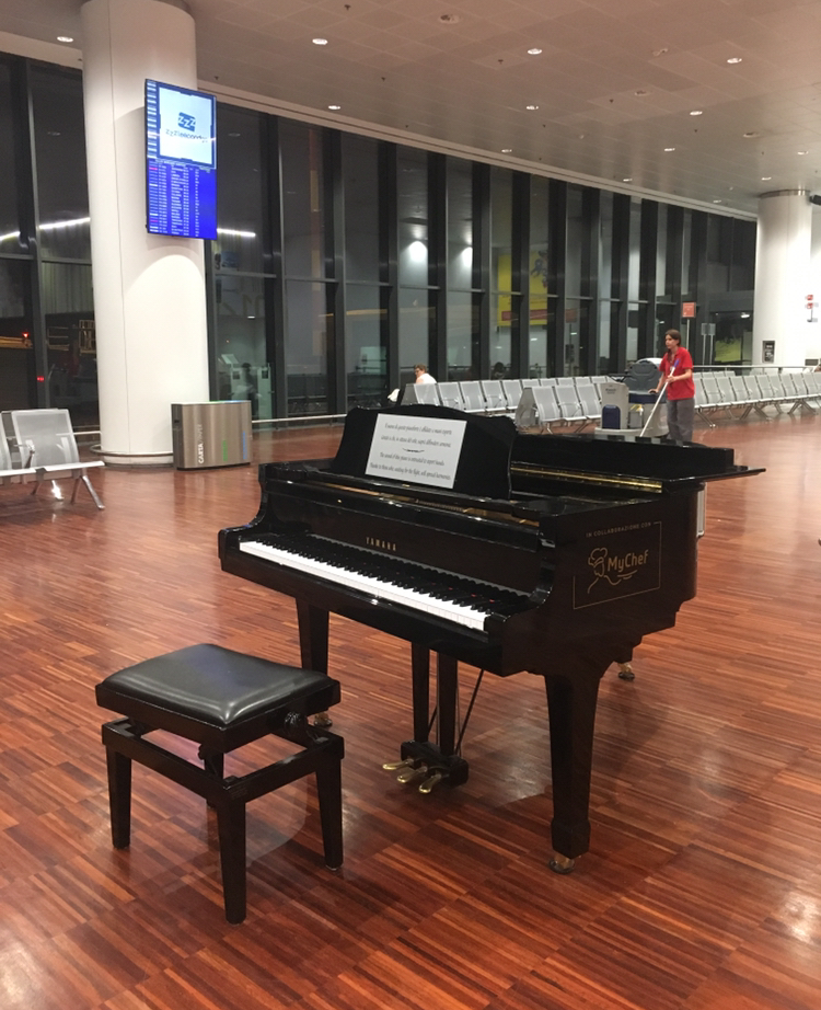 Oldukça sosyal bir havaalanı olduğunu söyleyebilirim.içerisinde Kitap değiş/tokuşu yapabileceğiniz kütüphane noktaları, kendine güvenen müzisyenler için halkın kullanımına sunulmuş piyanoları da bulunuyor. Ayrıca italya’da rastlayabileceğiniz bir uygulama olan, pedalla çalışan musluklar da bgy’nin önemli detaylarından. Ayrıca uçuşunuza uzun zaman varsa kendinize bir köşe bulup herkes gibi güvenle dinlenebilir, uyuyabilirsiniz.