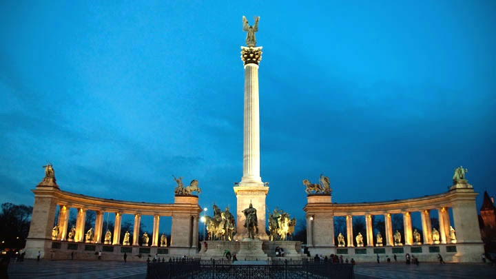 Budapeşte’nin hatta Macaristan’ın en büyük ve en ünlü meydanlarından biri. İki yarım daireden oluşan anıtın üstünde barış ve savaşı, çalışma ve refahı, bilgi ve zaferi simgeleyen semboller, kolonlarda ise Macaristan tarihindeki mihenk taşı kişiler, devlet adamları ve kralların heykelleri var. Her heykelin altında o kişinin tarihteki en kayda değer anının anlatıldığı rölyefler var. Tüm bunların tam ortasında da 36 metrelik korint sütun üzerinde baş melek Cebrail kanatlarını açmış bir elinde Macaristan’ın ilk kralı Aziz Stephen’in tacını bir elinde Hristiyanlığın kutsal simgesi haçı tutmuş bekliyor. Sütunun tabanını da Macar Krallığı’nın ilk hanedanlığından kurucu Árpád ve diğer kabile liderleri çevreliyor.