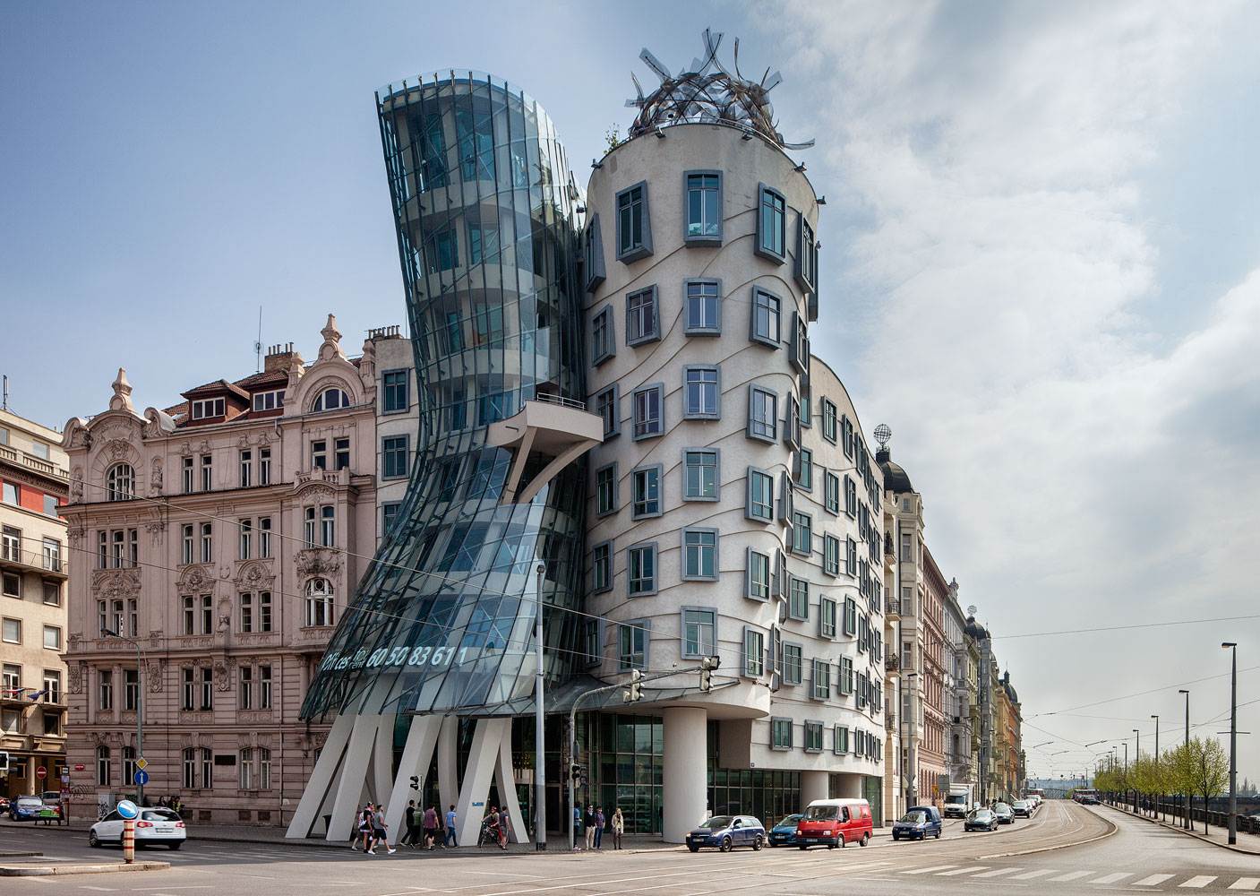 hahaha. çek cumhuriyeti başkenti prag'daki dans eden ev. yamuk yumuk mimarisi ile etrafında bayburt nüfusundan daha çok türk görme ihtimalinizin olduğu bir yapıdır efendim.