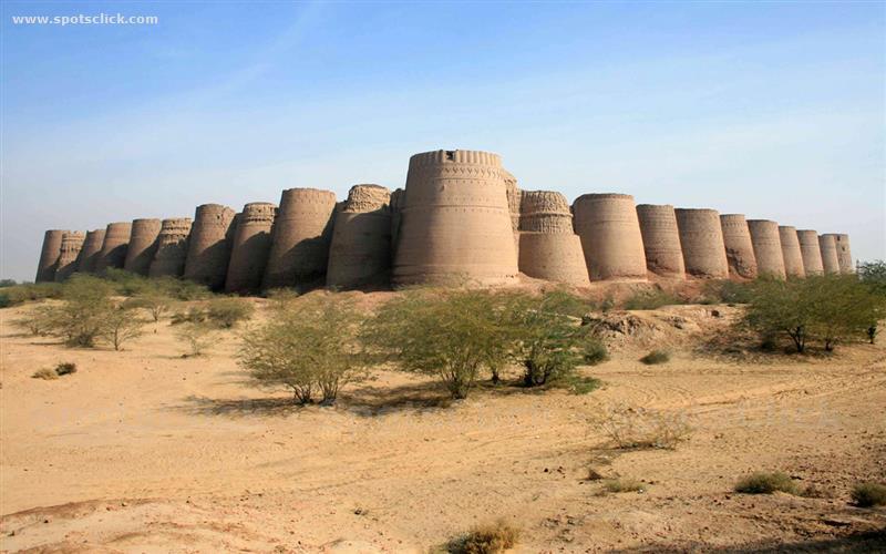 Pakistan (Derawar Kalesi): Toplama 40 farklı burcun oluşturduğu, 13 yüzyıl gibi zorlu bir dönemde sadece tuğla kullanılarak inşa edilmiş olan en büyük kalelerden biridir. Yüksekliği, 30 metre olması nedeni ile surları tuğla olmasına karşın düşmanı döneminde oldukça korkutmuştur