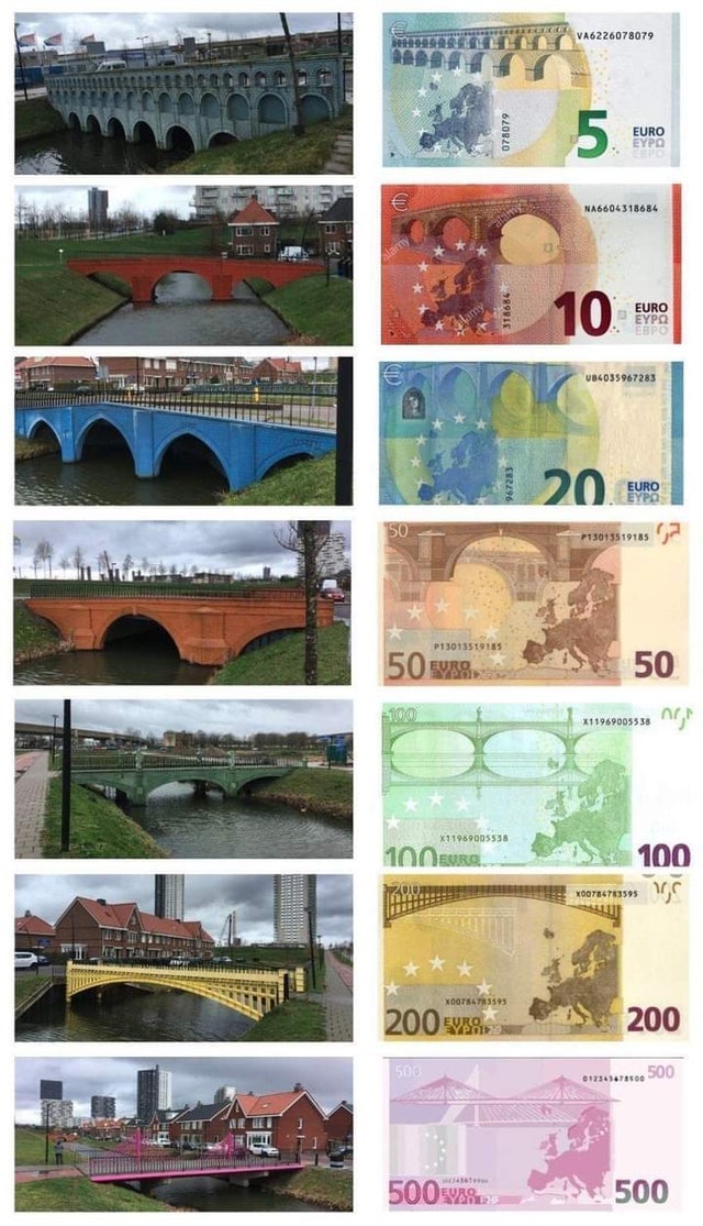 Euro banknotları ilk tasarlandığında, AB üye ülkeleri arasında bir kavgaya neden olmamak için kurgusal köprüler içeriyordu.
