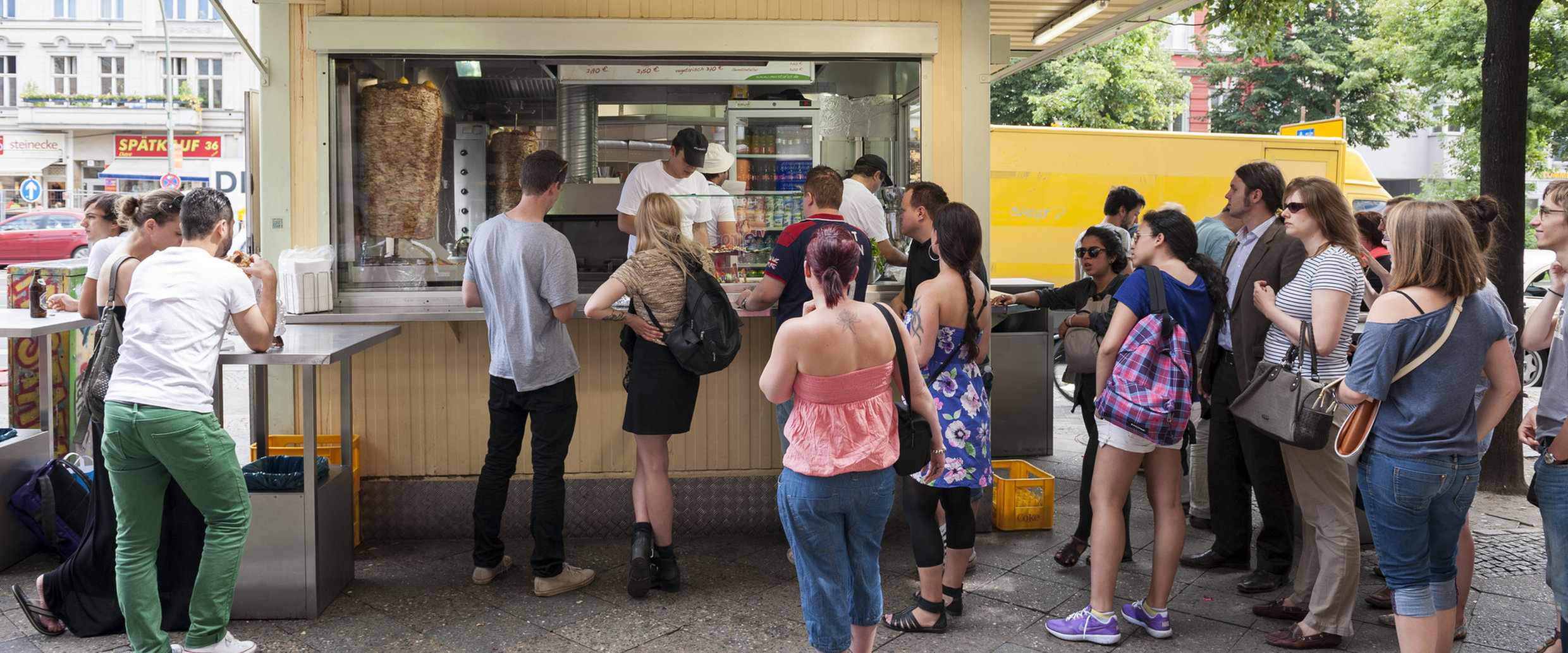 Türkiye'den giden gezginlerin ya da Türkiye kökenli vatandaslarin dükkanin önündeki kuyruktaki kisi sayisiyla ve döner fiyatiyla kücük bir matematiksel hesaplama yapip "iyi para kaldiriyorlar" demelerine sebep olan alamanci dönerci. .d.d