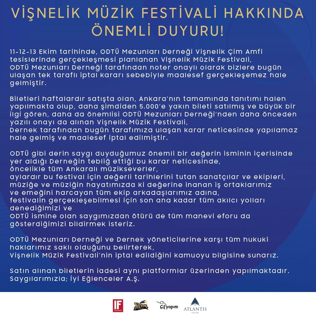 Şimdi ne demek oluyor yani hiçbir gerekçe göstermeden festival iptal etmek? Yapılan onca hazırlık, harcanan onca para, satılan onca bilet ne olacak sayın yönetim?