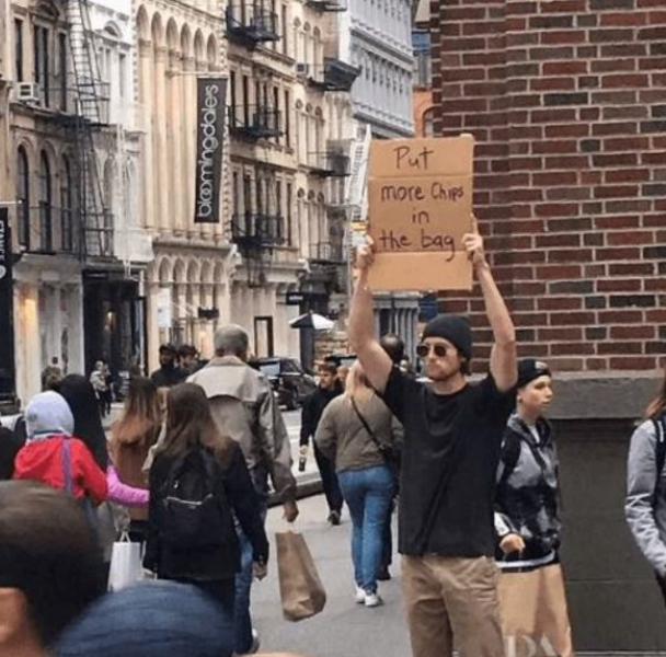 New york’ta yaşayan ve kendisine pankart taşıyan adam (dude with sign) takma adını uygun gören seth isimli bir Amerikalıdır.