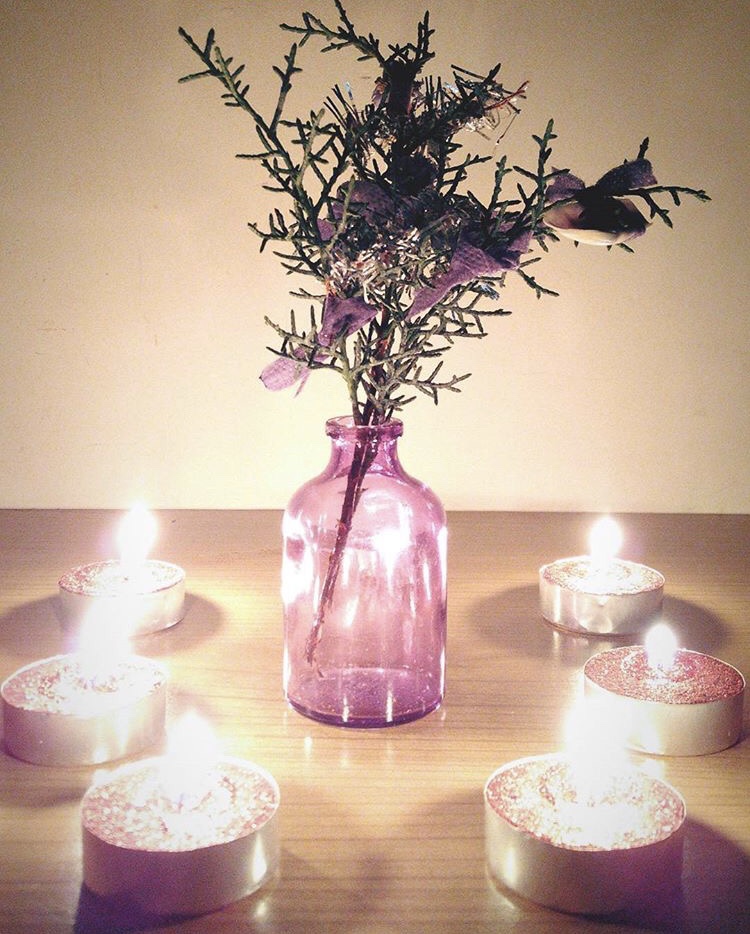 İki sene evvel ufak bir dal parçasını renkli şeylerle süsleyip yanına mumlar döşediğim çakma olanından bir yılbaşı simgesi. Görseli ekte sunuyorum ki ufak şeylerle mutlu nasıl olunur görğn diye.*