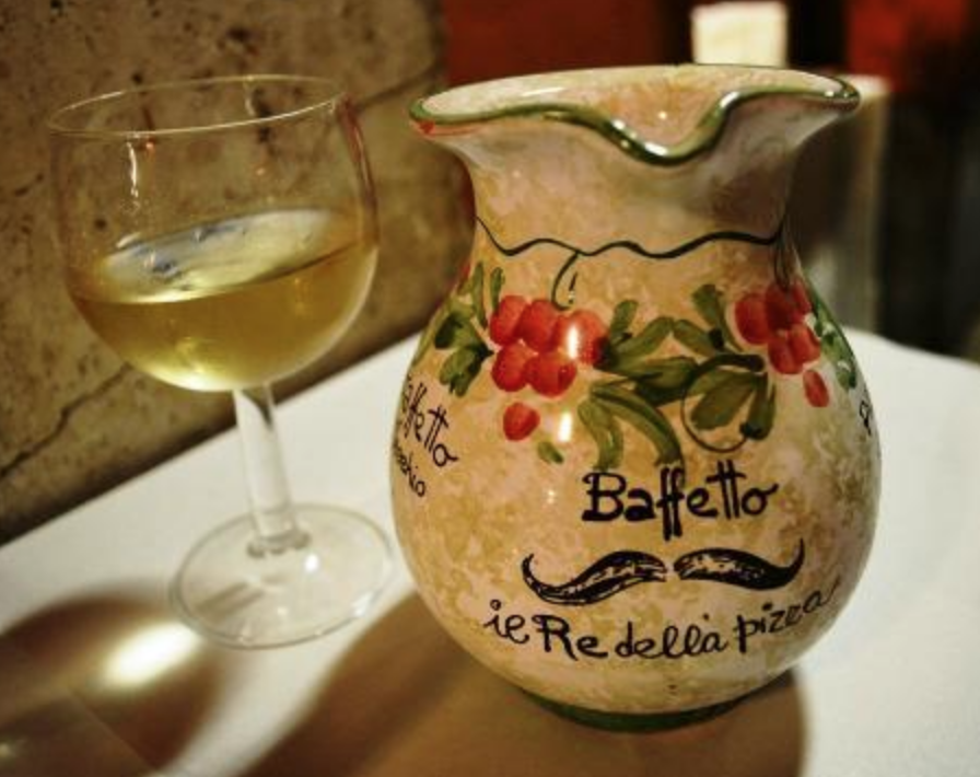 “pizzeria da baffetto” roma‘da en ucuz yemek yediğimiz yerdi. 2 pizza + yarım litrelik şarap (şarap resimdeki gibi sürahide geliyor)
