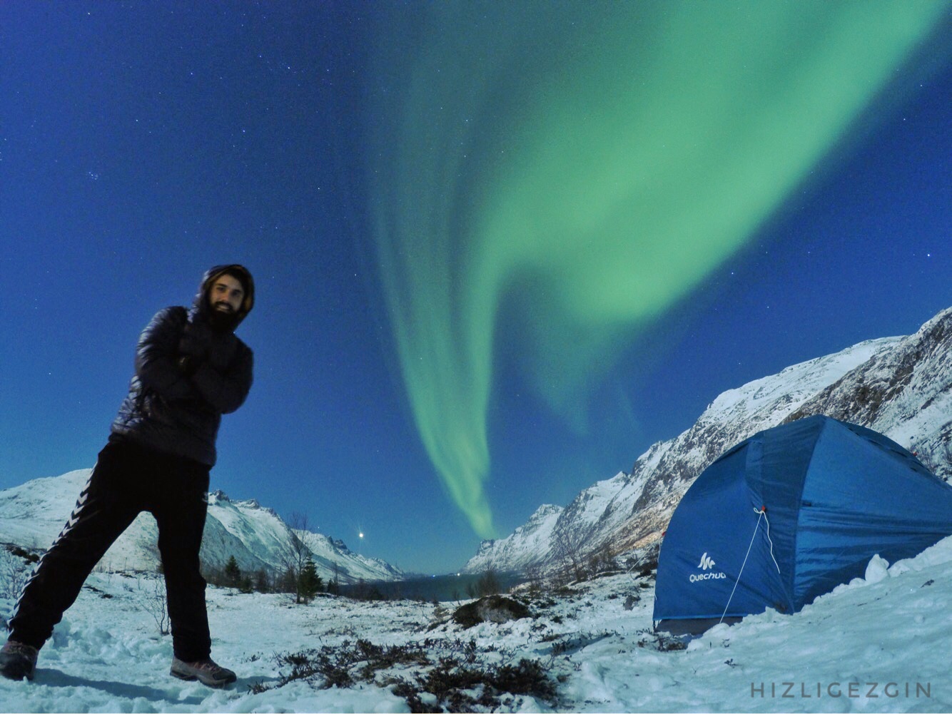bense şubat ikibinonyedi'de evimden 4-5 bin kilometre uzaklıkta olan norveç'in tromsø şehrine yalnızca bu manzara için yola çıkmış olup o an'lara şahit oldum. havada süzülürken ben o anda hayatımdaki en güzel kampı yaptım.