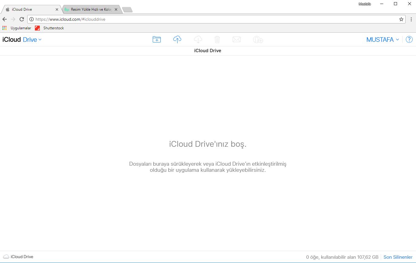 Ancak bi gariplik vardı. Sağ alt tarafta 0 öğe yazıyor ama kullanılabilir alan 107.62GB gözüküyordu. iCloud drive boş ama bişeyler yer kaplıyordu. Ayarlar kısmına girdim ve orada da verilerimin kapladığı yeri görüyordum. Ama verilerden eser yok.