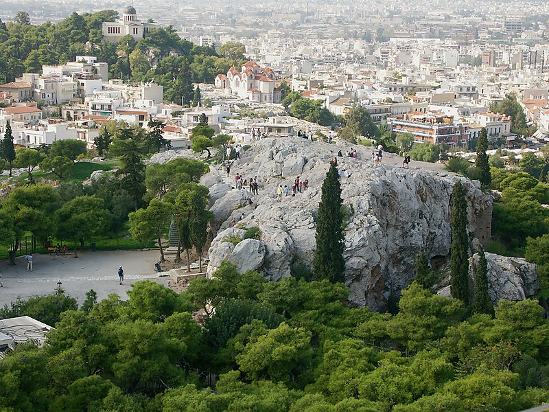 bir diğer adıyla Areopagus Hill. (bkz: akropolis)'in hemen altında bulunan şehri en güzel izleyebileceğiniz ve favori lokasyonlarımdan bir tanesi. turistlerin çok bilmediği yerlerden biri olsa da zamanınız olursa şayet şarabınızı alıp gitmenizi şiddetle tavsiye ederim.